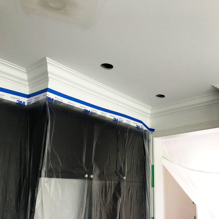 Photos of Popcorn Ceiling Removal, Skim Coat Plastering, Crown Molding & Pot Light Installation