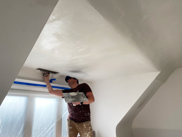2. Applying a minimum of 2 coats of plaster on the entire ceiling.